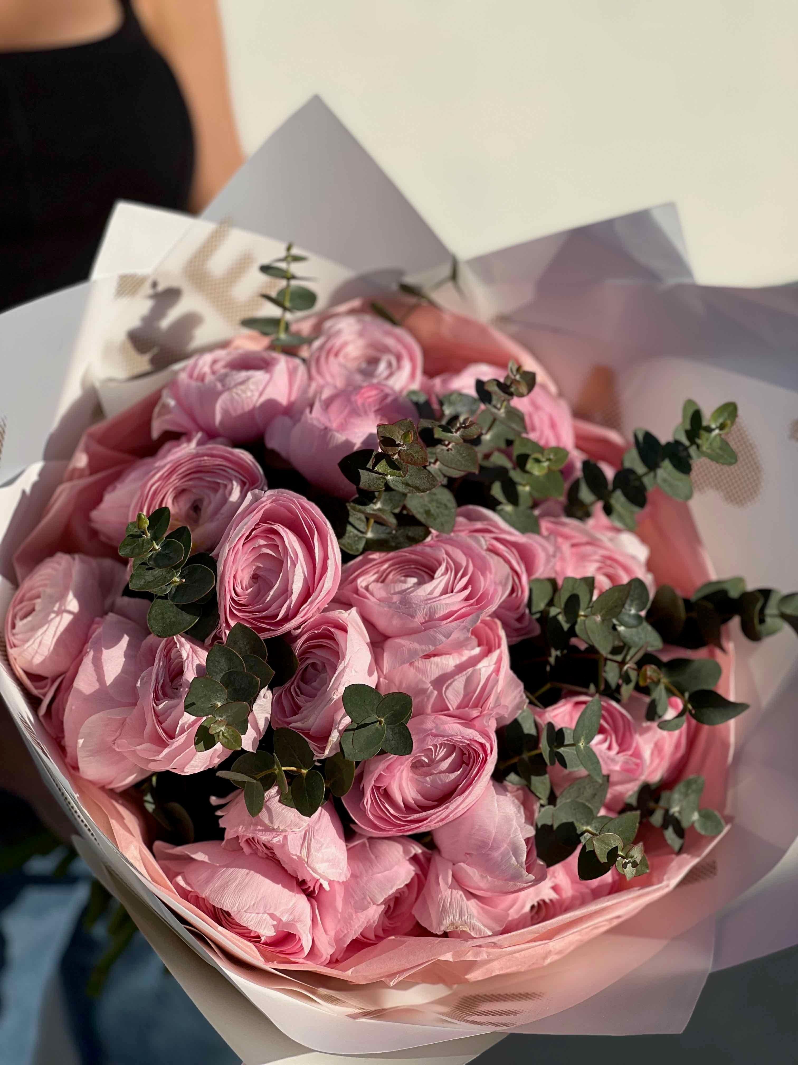 Introducing the Pink Ranunculus Bouquet – an exquisite blend of charm and elegance that will bring a touch of enchanting beauty to any occasion. Our skilled florists have lovingly hand-picked each vibrant pink ranunculus blossom to create an awe-inspiring display that exudes sophistication and grace.