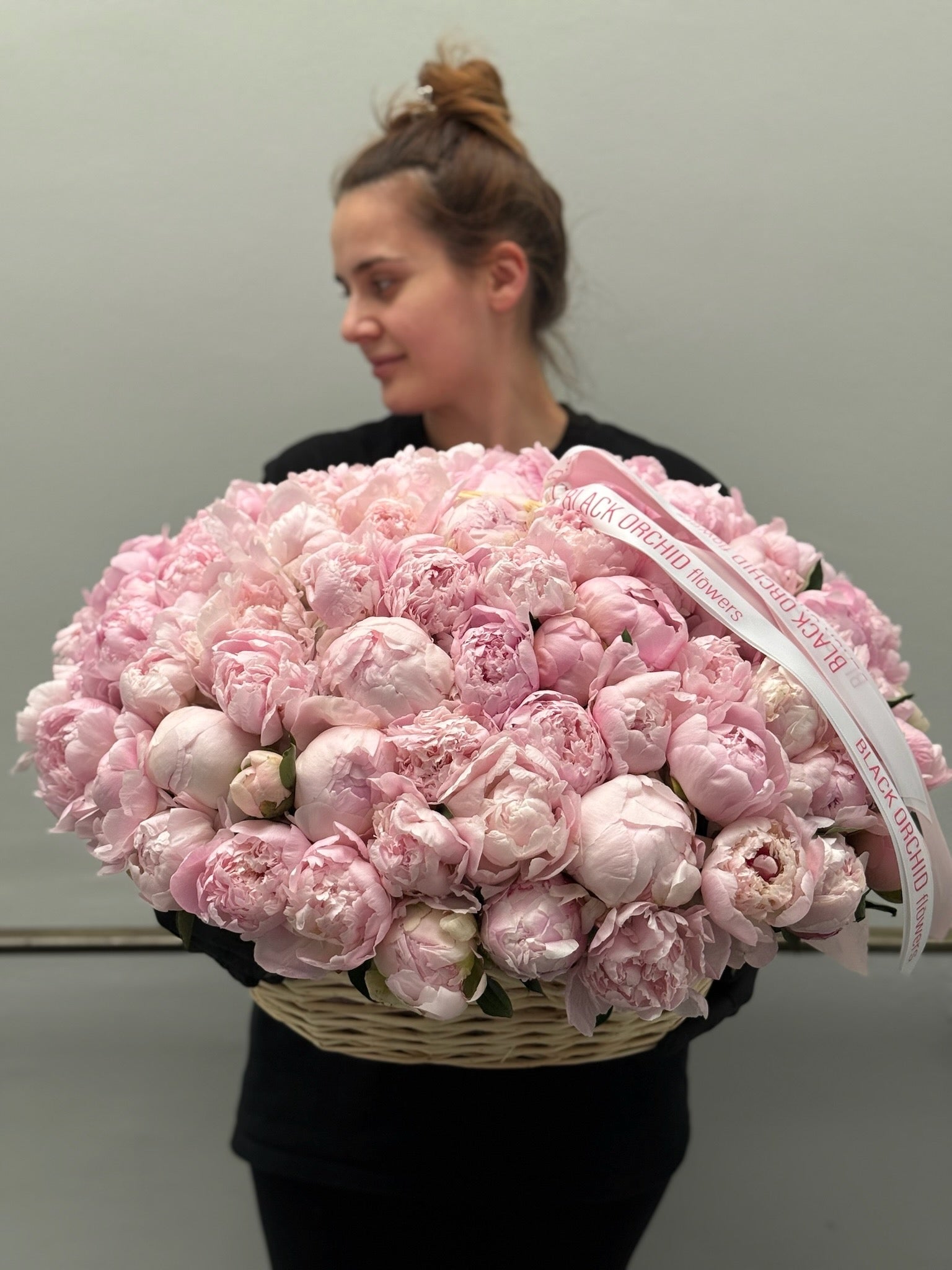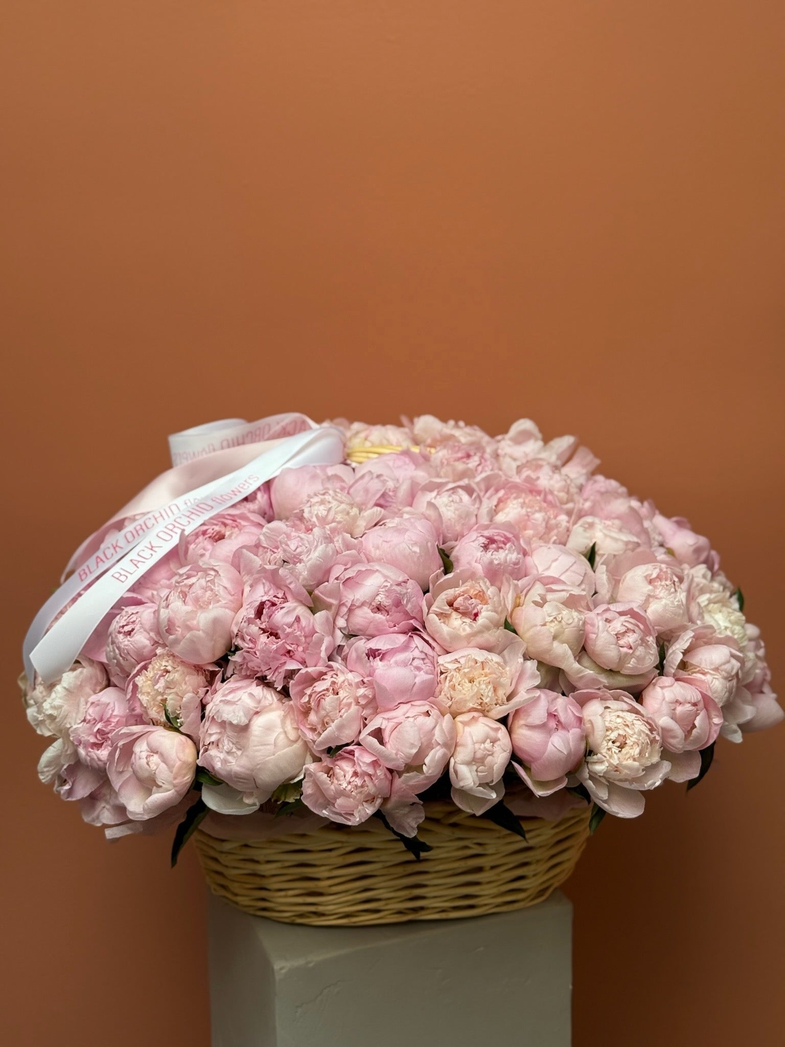 One of the most luxurious arrangement you could see. Delicate pink peonies in a basket, will impress your loved one.