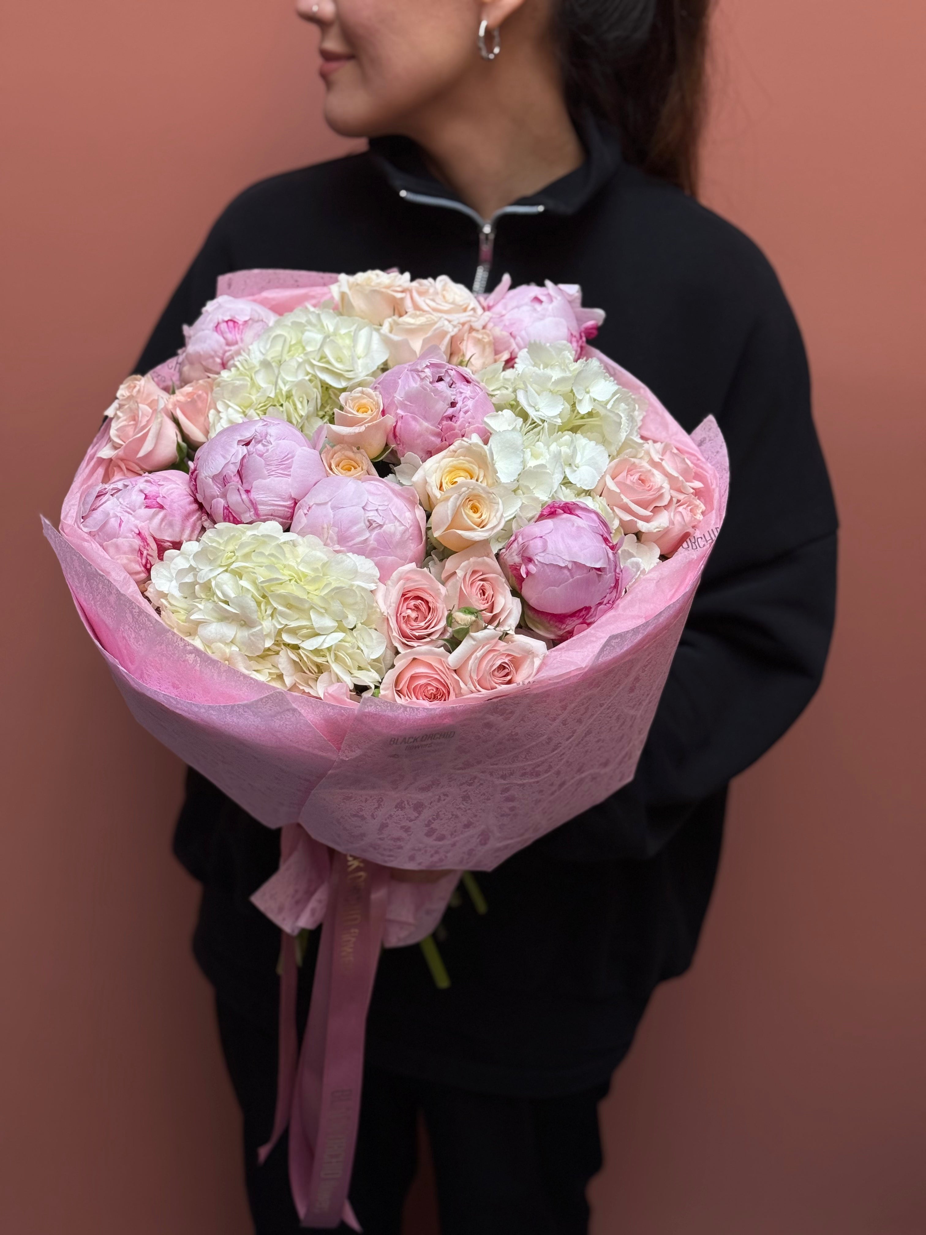 Gorgeous bouquet of premium hydrangea, peonies and roses. Only for one week form November 23 to November 30, 20%OFF special